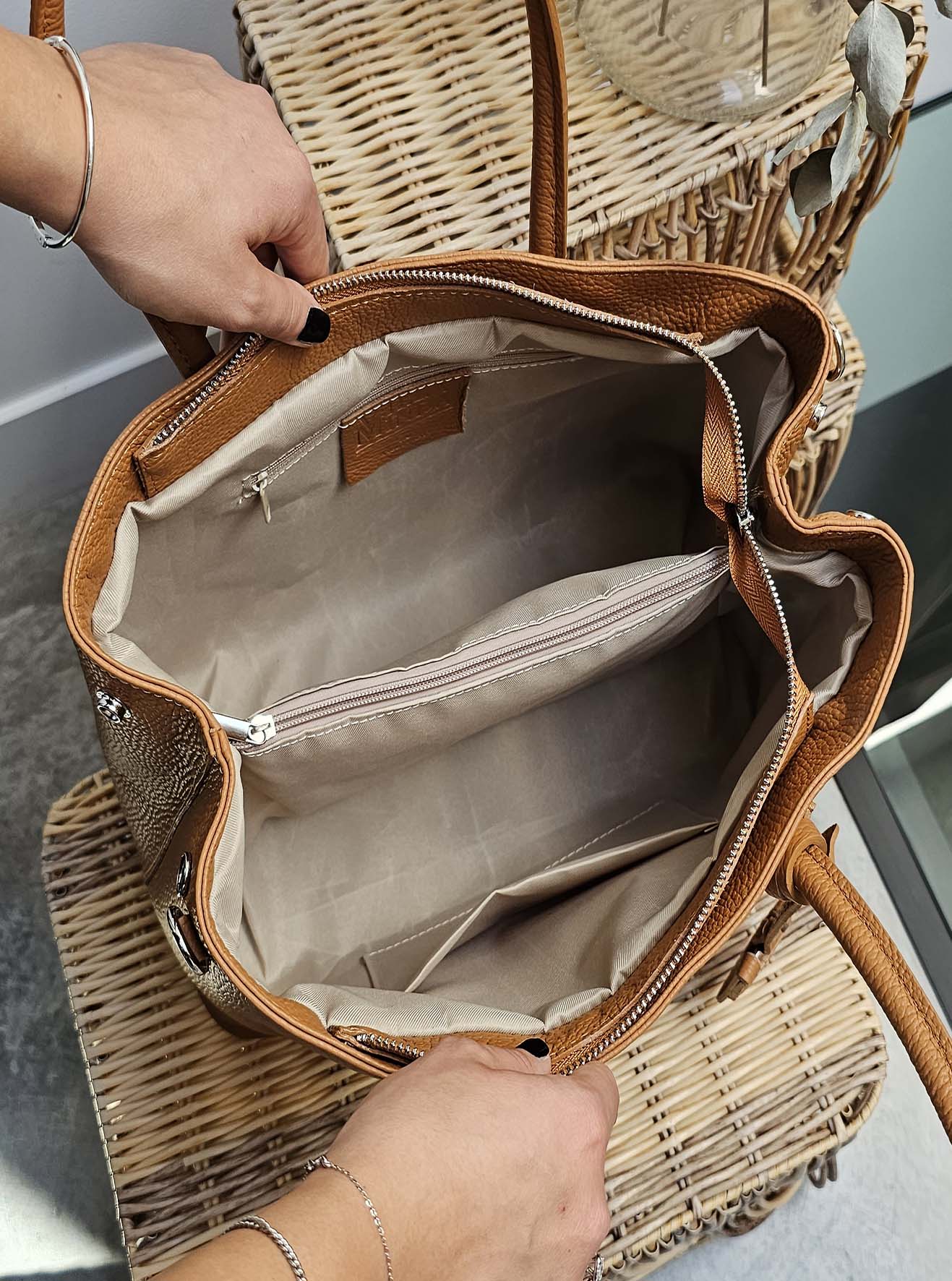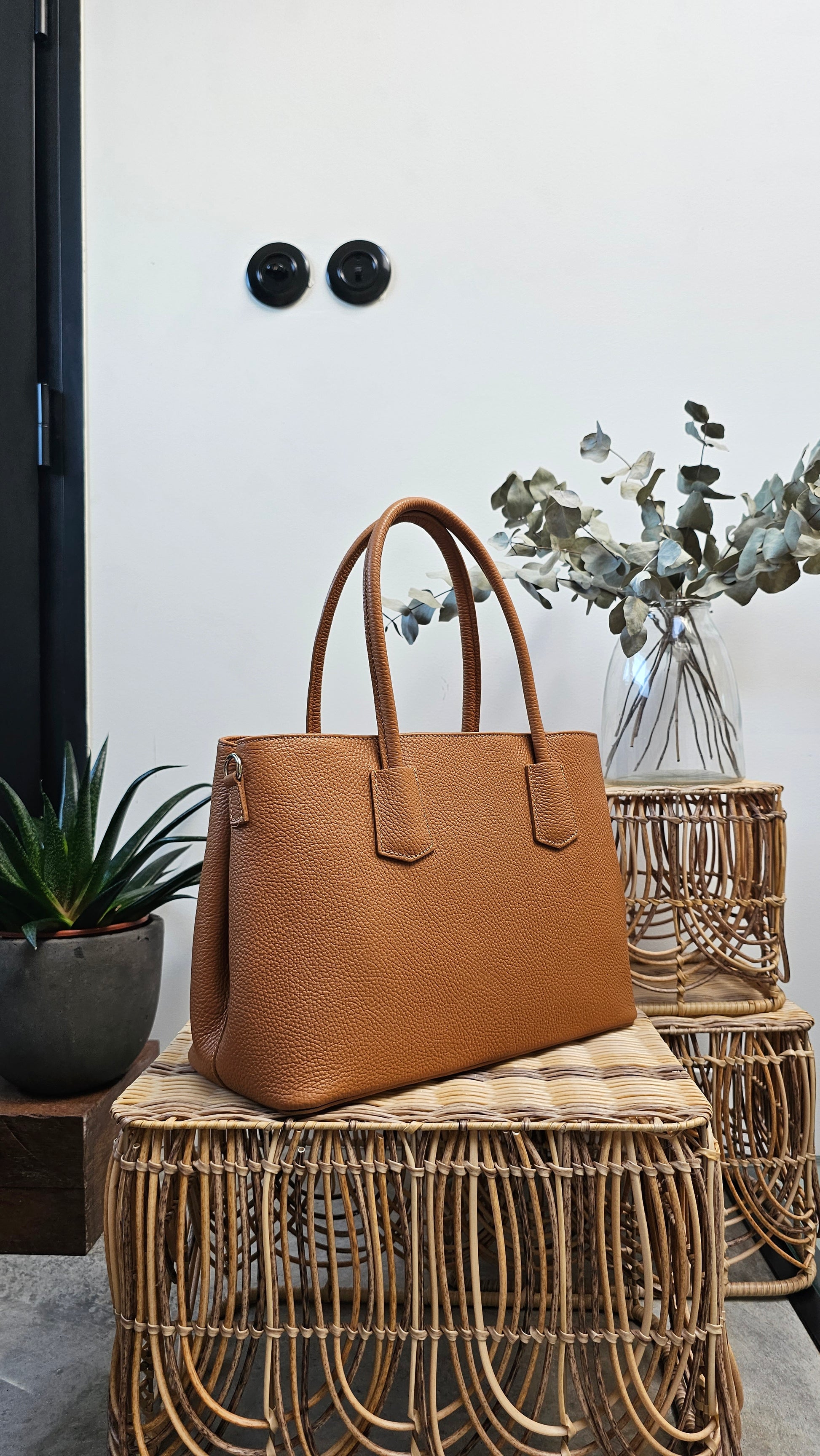 Le sac à main Clara Camel, en cuir doux et résistant, est le compagnon parfait pour votre garde-robe ! Portez-le à l'épaule ou à la main. Rangez tout ce dont vous avez besoin avec ses pochettes intérieures. Parfait pour les femmes modernes et actives, arborez-le fièrement !