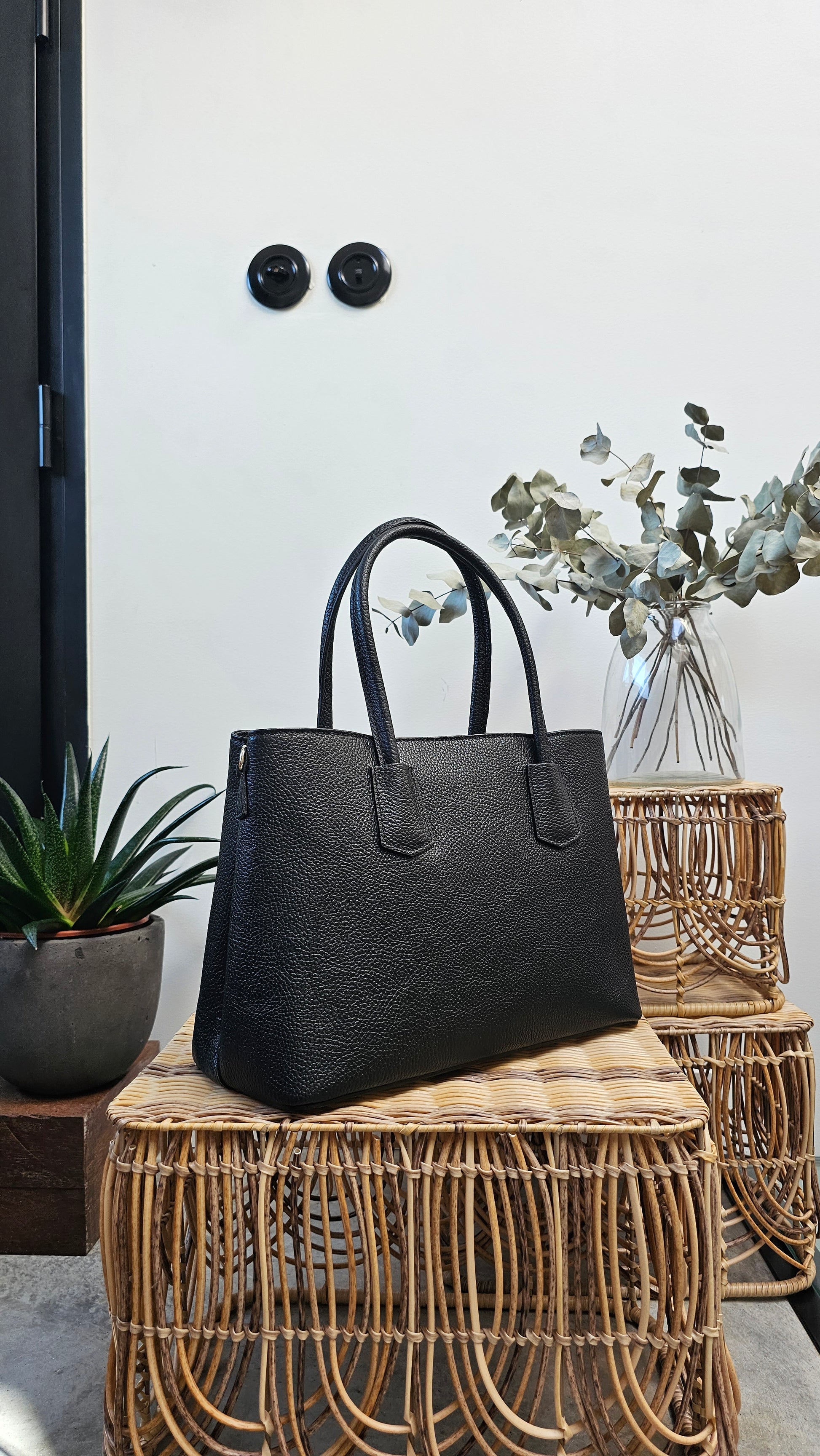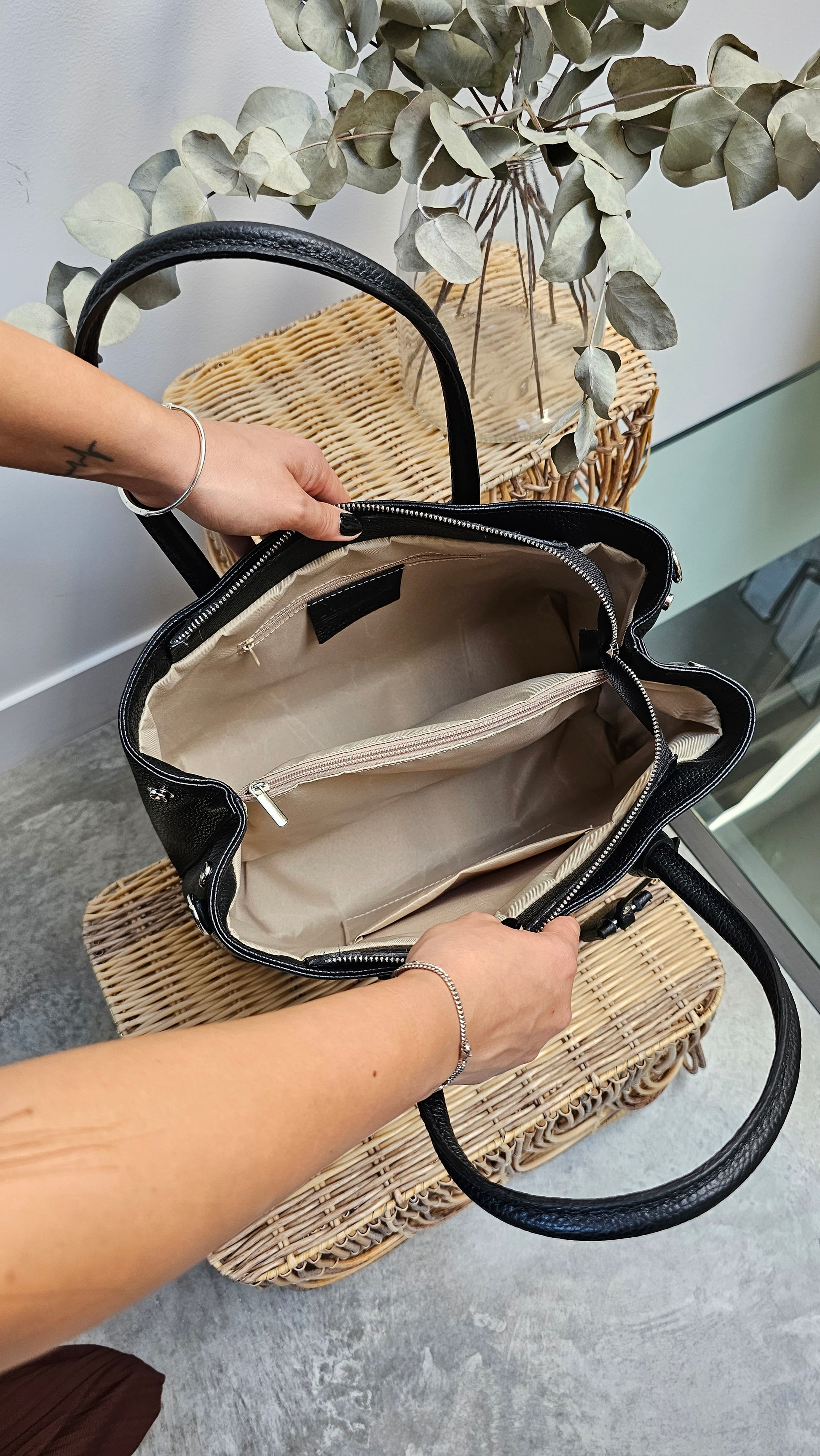 Le sac à main Clara Noir, en cuir doux et résistant, est le compagnon parfait pour votre garde-robe ! Portez-le à l'épaule ou à la main Rangez tout ce dont vous avez besoin avec ses pochettes intérieures. Parfait pour les femmes modernes et actives, arborez-le fièrement !