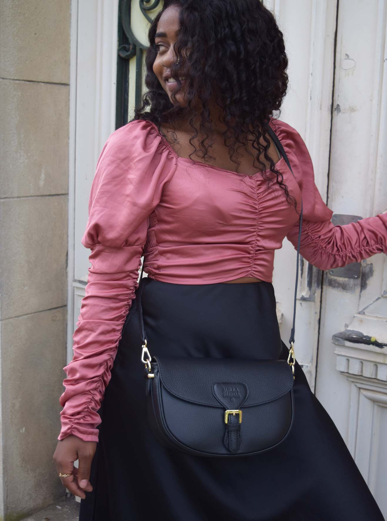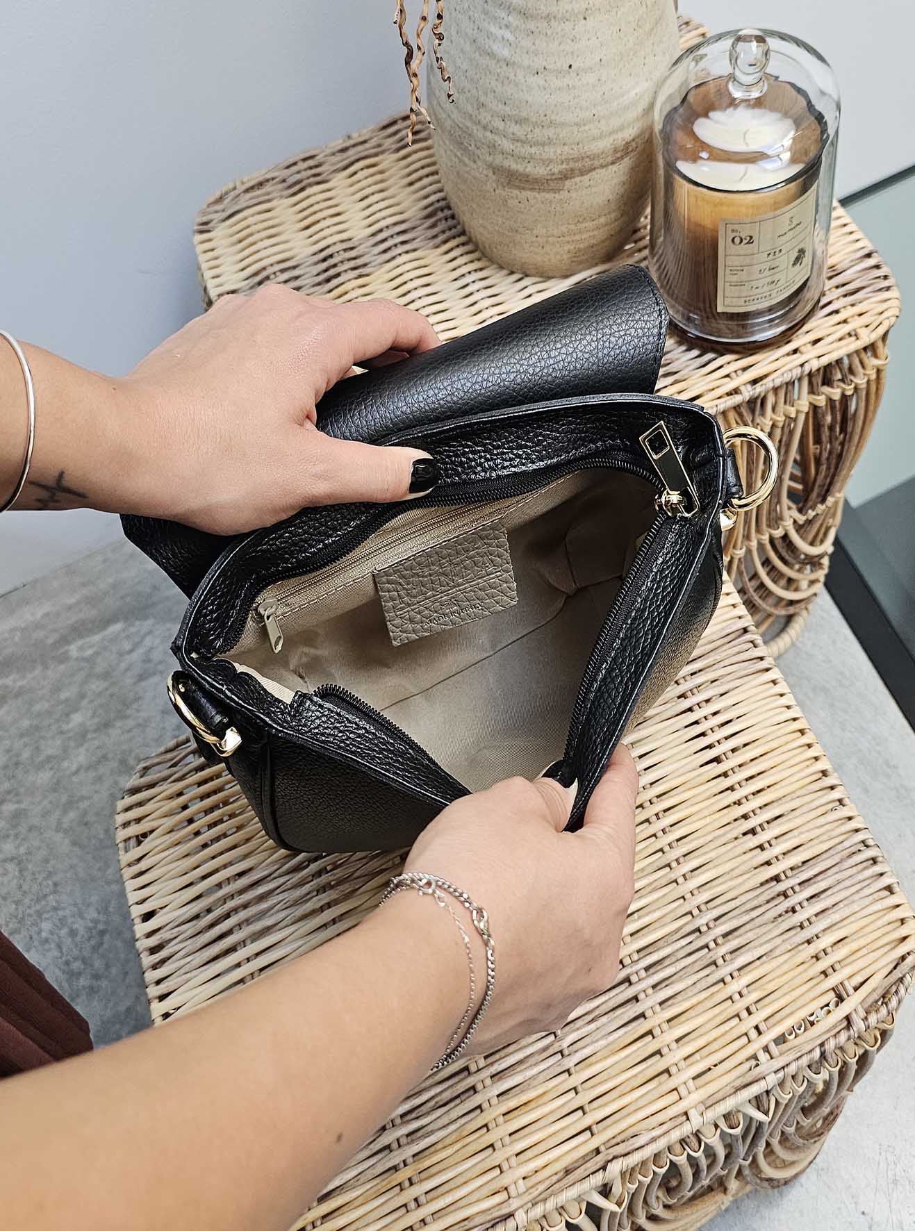 Le Sac à main Mia Noir est le compagnon de mode idéal. Fabriqué en cuir doux et résistant, ce sac offre une bandoulière amovible pour le porter à l'épaule ou à la main. Rangez tout ce dont vous avez besoin grâce à ses pochettes intérieures, idéal pour les femmes modernes et actives. Un produit durable et élégant pour compléter votre look.