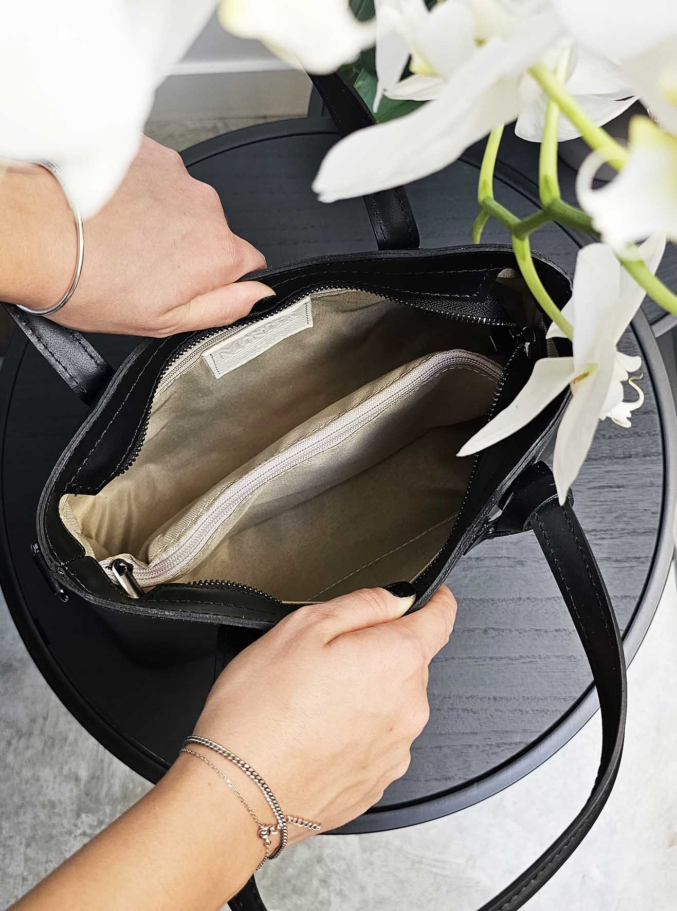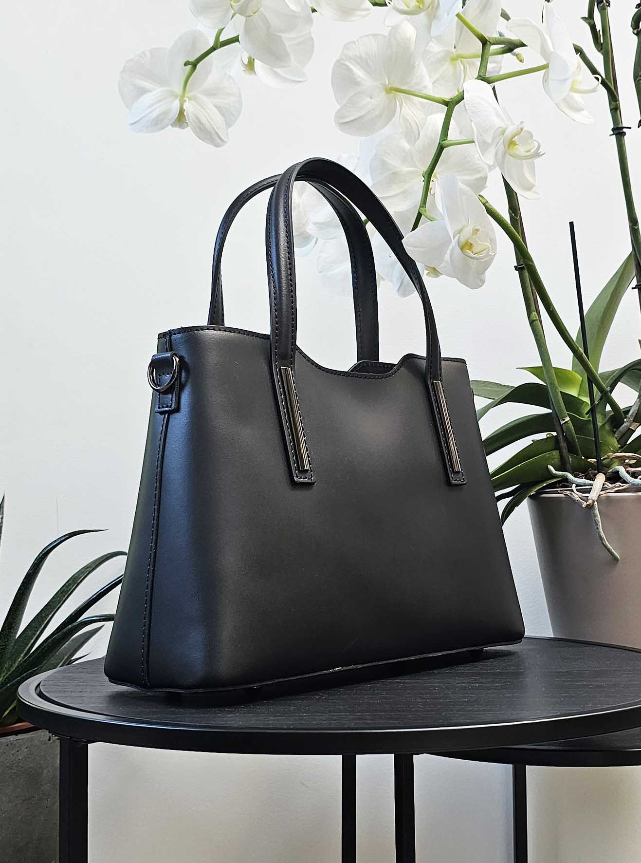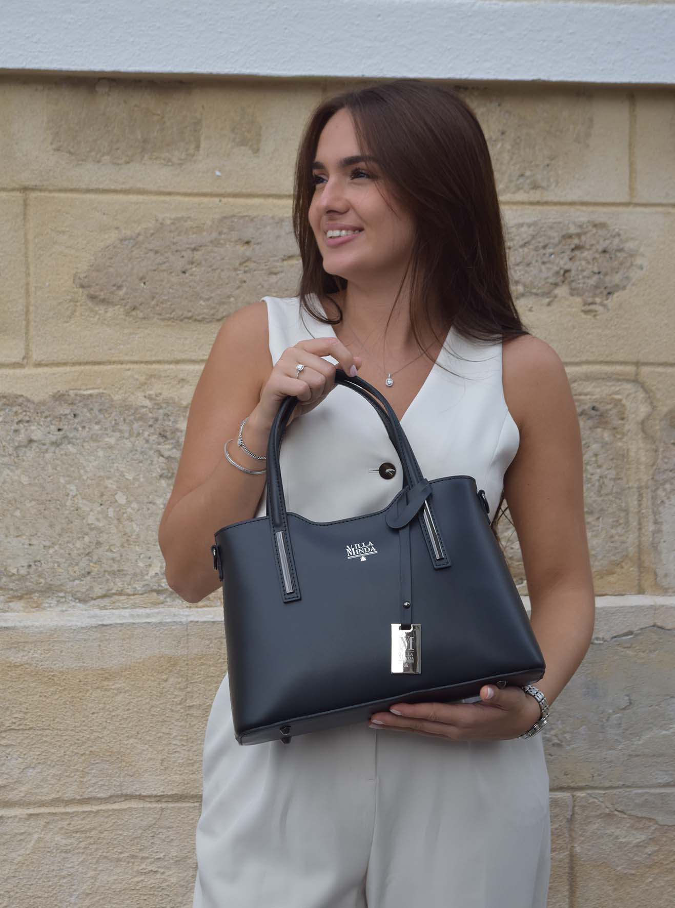 Le Sac à main Sara Noir est conçu avec du cuir de vachette véritable et fabriqué en Italie. Il peut être porté à la main et à l'épaule et a une bandoulière amovible. Finition en métal doré avec des poches intérieures, accompagné d'une housse de protection pour protéger le produit. Une pièce intemporelle, classique et durable.