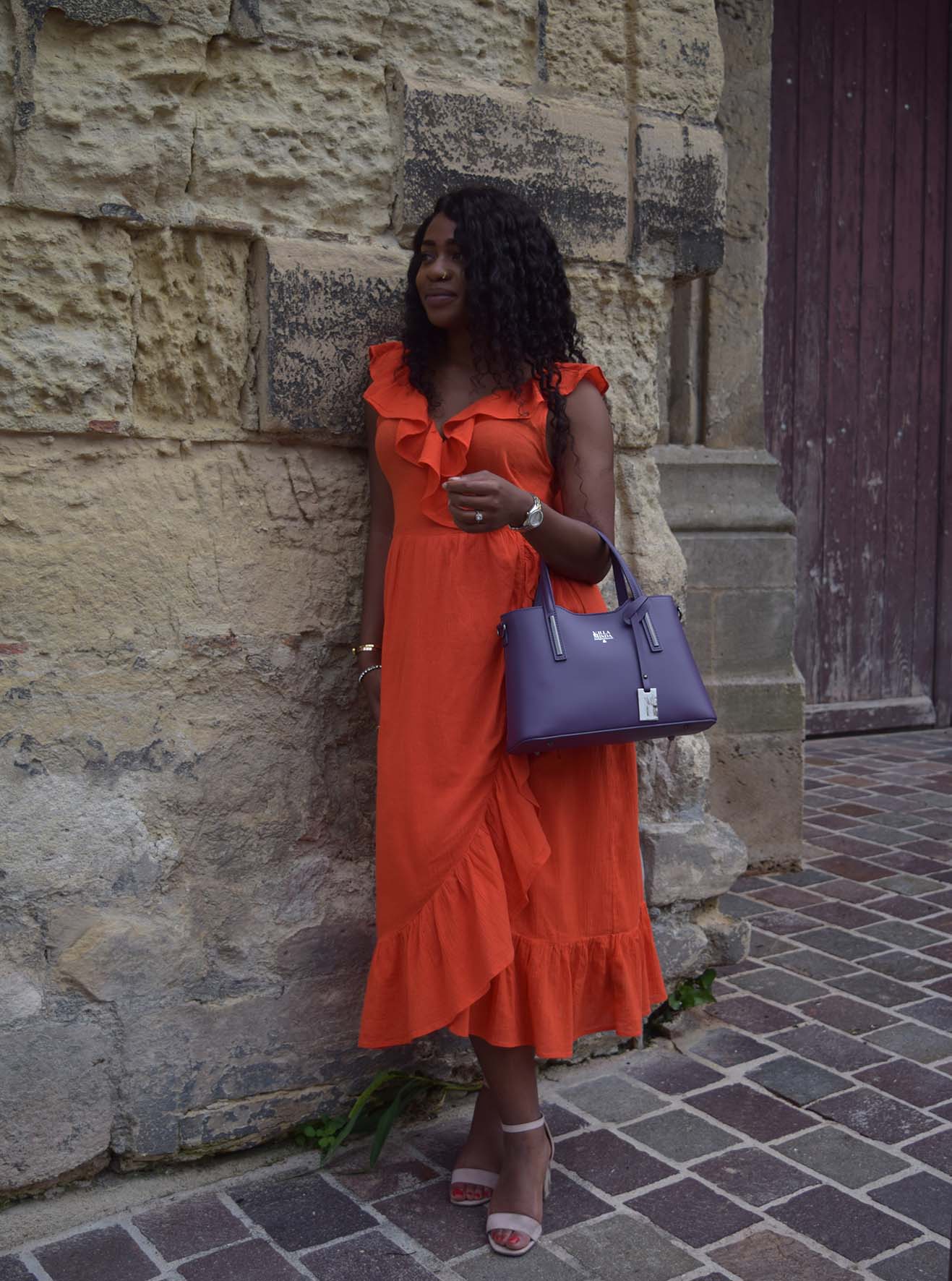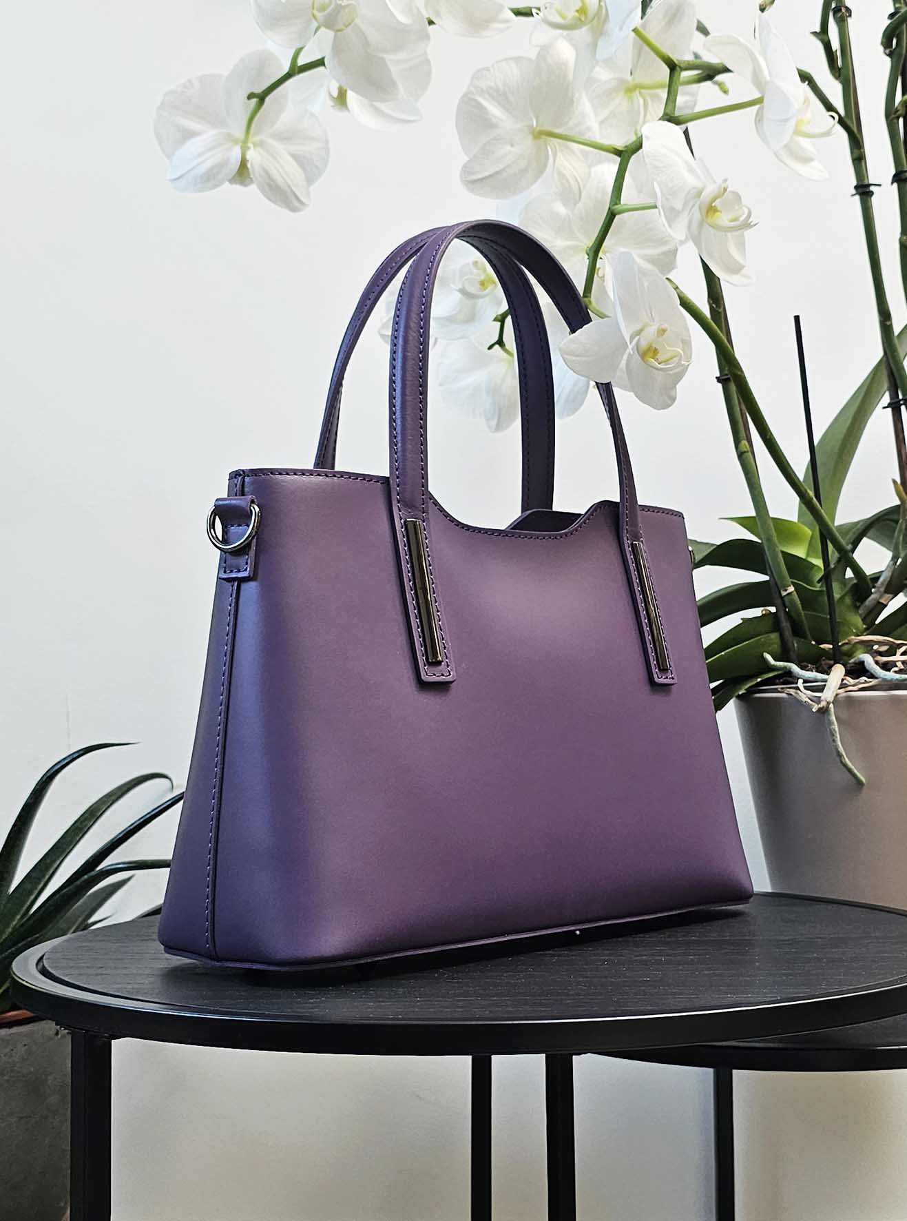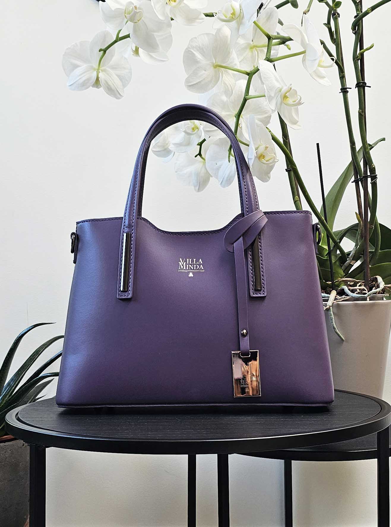 Le Sac à main Sara Violet est fait de cuir de vachette véritable et est fabriqué dans un atelier italien. Ce sac à main présente des finitions en métal doré, une bandoulière amovible et des pochettes intérieures. Un sac à main pour des occasions formelles, mais peut également être porté à l'épaule ou à la main pour un look plus décontracté. Livré avec une housse de protection.